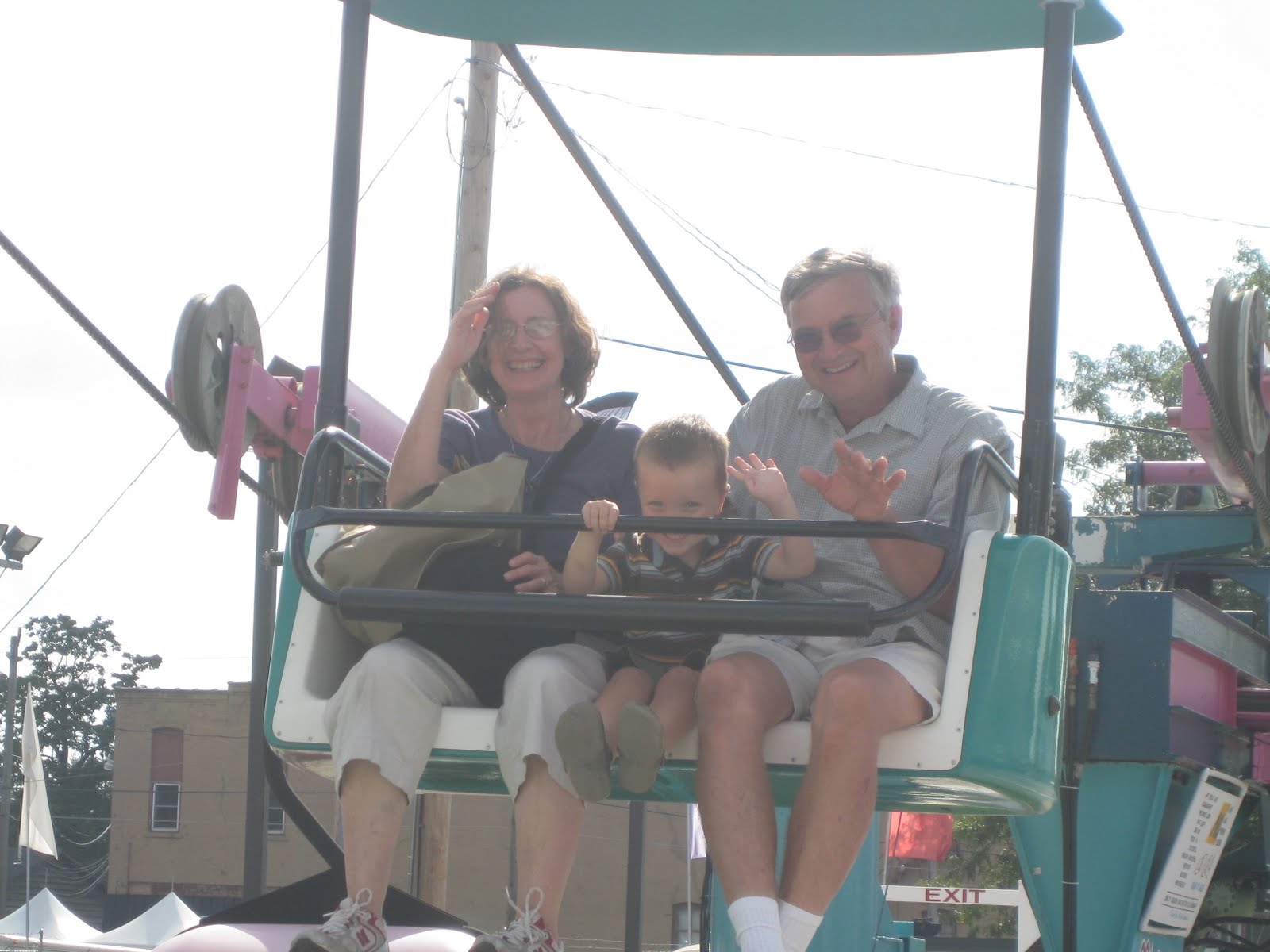 We loved the apple orchard so much that we thought we would take both sets of grandparents to see the place. The Grandma and Grandpa Fawcett along with Leanna and Grace came to Ames a couple weeks ago and we shared a wonderful time together, riding the Thomas the Tank Engine Train in Boone, IA. It was a blast and the kids had so much fun! It's one thing to watch Thomas the Tank on television, it's another thing to actually ride him! It was a hit. We then ventured to Cambridge to visit the apple orchard together. There was absolutely no one there so we had the whole place to ourselves. It was a bit chilly and wet, but that didn't stop the kids one bit. They rode the tractors, fed the animals, jumped in the corn pit, and went down the monster slide! A few days later, grandma Shiplett wanted to go with the kids so we went with my mom, my sister and her kids and Jeanie (my sister's mother-in-law) and we had a great time once again at the orchard. This time we spent most of our time on the giant jumping bean doing some major tricks! I think we all (mostly the adults) were a little sore the next day from the twisting and flipping we did. It was well worth it though. I think we might head to the orchard this week and try to make it with Thomas once more before the season is over. It's been well worth the cost of a season pass! It also inspired me to bake my first homemade apple pie! The apples are delicious from the orchard so I used them up in a pie I baked for some guests. It came out pretty good, flavor great, consistency was a little off. I'm hoping it's the first of many to come! Enjoy the pictures!
